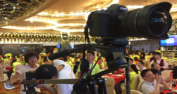 会场前排坐的重要嘉宾领导需要从左右两个方向对会场进行拍摄,还有就是整个会场从左右、前后对整个会场进行拍摄。
