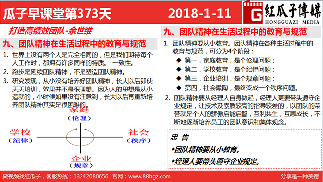 4. 团队精神要从小教育。团队精神在各种生活过程中的教育与规范,可分为四个阶段: