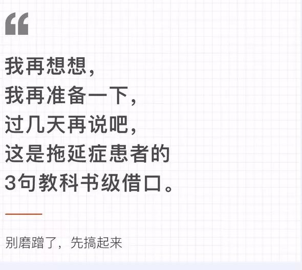 「我再想想」、「我再准备一下」、「过几天再说吧」,这是拖延症患者的 3 句教科书式借口。