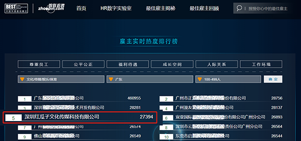 近日,由中国领先的职业发展平台智联招聘,联合北京大学社会调查研究中心共同发起的一项寻找和评选中国最佳雇主的调查活动——“中国年度最佳雇主”名单公布。作为广东文化传媒行业的知名企业,深圳红瓜子文化传媒科技有限公司荣获“2017中国年度最佳雇主”提名奖。