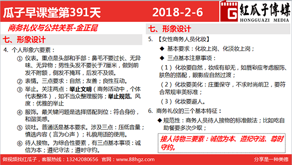 ③. 举止。关注两点:举止文明(商务活动中,个体代表整体),