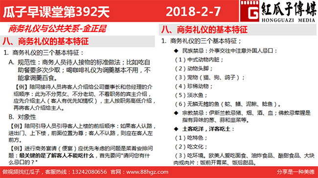 A. 规范性:商务人员接人待物的标准做法;比如吃自助餐要多次少取;