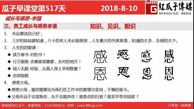 红瓜子传媒首页>相关资讯>最新动态>瓜瓜早课堂第517期-员工成长与感恩孝道3