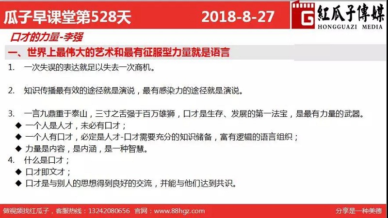 早课堂是由红瓜子传媒部分员工和喜欢学习提升自己的小伙伴组织的学习团队,在每周一至周五早上7:40分开始至8:40进行一个60分钟学习和自我提升的课堂。期待更多的小伙伴加入我们。