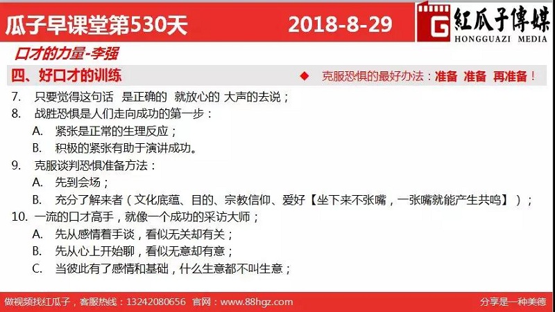 红瓜子传媒首页>相关资讯>最新动态>瓜瓜早课堂第530期-好口才的训练