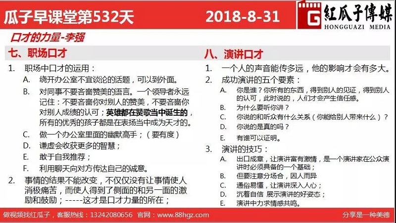 早课堂是由红瓜子传媒部分员工和喜欢学习提升自己的小伙伴组织的学习团队,在每周一至周五早上7:40分开始至8:40进行一个60分钟学习和自我提升的课堂。期待更多的小伙伴加入我们。