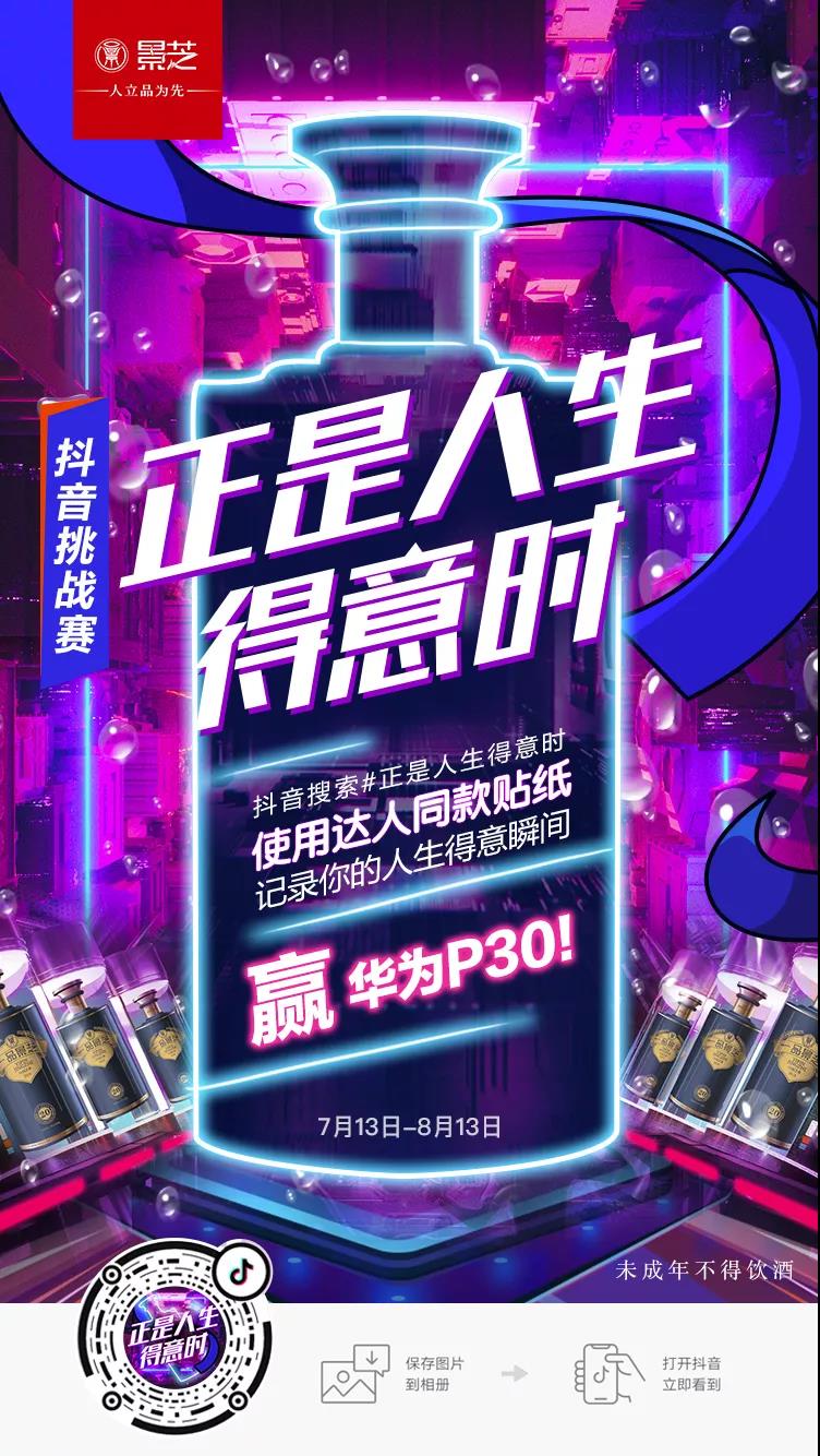 然而,近年来,随着竞争的日益激烈,酒行业扩张速度远超实际消费需求。供过于求的市场竞争下,传统营销策略再也无法为酒类品牌提供稳定市场份额。因此,新营销时代下,不懂得如何迎合消费者偏好、不知道如何实现线上用户市场增量,已成为悬在白酒企业头上的达摩克利斯之剑。线下地区垄断销售境况一时难以打破,酒类品牌亟需线上消费的动力加持。那么该如何紧抓消费者、培养线上用户品牌黏度?基于短视频APP移动用户覆盖广渗透高的特性,白酒品牌景芝酒业将头部平台抖音择为其线上营销的阵地,借此开辟营销新渠道。景芝酒业在抖音发起#正是人生得意时#区域互动赛,聚焦山东地区,借助贴纸互动、达人视频等元素,一举将“正是人生得意时,喝一品景芝”的核心理念传递给目标受众,为白酒行业示范了一次创新营销的正确打开方式。截止日前,挑战赛播放量已达4.7亿,互动量1047万+。