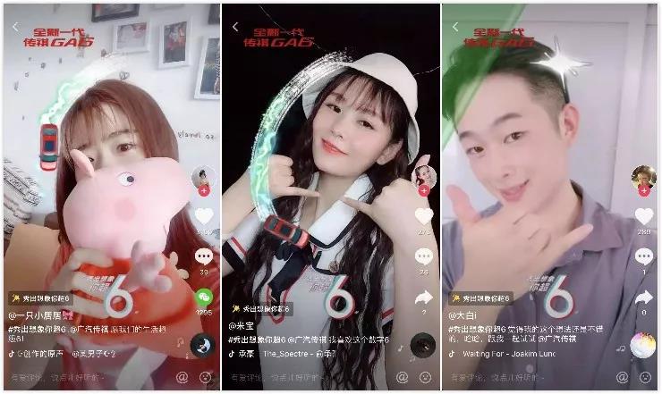活动的创意非常简单,只需要用户寻找到关于“6”的元素,特效贴纸的绿幕就会揭开,代表着属于用户自己的电影正在上映,通过鼓励用户使用贴纸开放性创作,并且在传播过程中,通过参与者的手势、特效、文案不断强化用户对全新一代传祺GA6的记忆。
