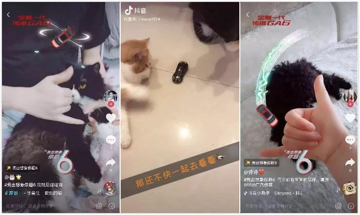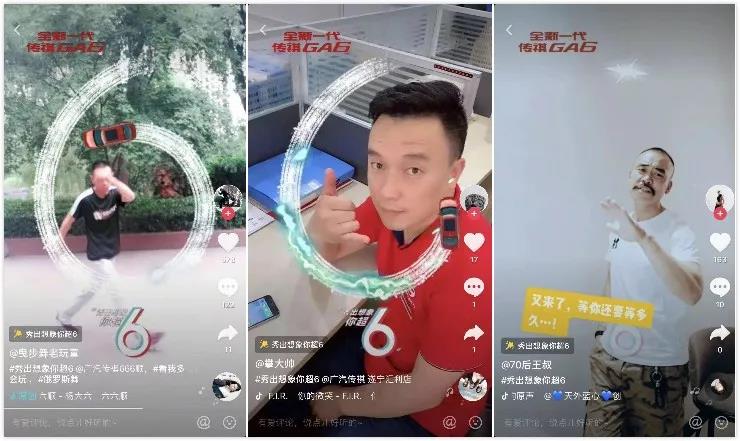 另外广汽传祺GA6本轮营销事件的打造,以抖音为主阵地,在广汽传祺官网、户外广告、多家媒体广告全面布局抖音#秀出想象你超6 挑战赛活动信息,全力与顾客进行互动,发起这次基于“参与感”的全民超级挑战赛盛宴。
